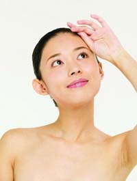 小贴士:当肌肤感觉特别干燥时,可使用免洗洁面乳重新清洁面部,或者用一块脱脂棉蘸着乳液,用它把脸部擦拭一遍,再涂些保湿乳液,以保持面部滋润清爽。