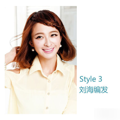STYLE3 刘海编发 在明星头上,最常出现的非刘海编莫属。这种编发视觉变化多,可编出有刘海、无刘海2 种感觉,有刘海的较能修饰脸型。