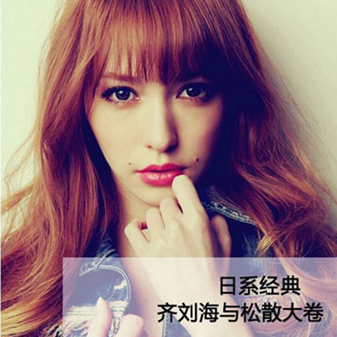 齐刘海与松散大卷 微微过眉的长度最能体现可爱气质,搭配具有领款感的长卷发使整体造型可爱度剧增。不论是齐刘海还是长卷发,都是能够很好的修饰脸型的发型,想要追求立体小脸的女生一定不要忽视对发型的打造。 日系卷发造型很重要的一点就是发色一定要选择偏黄色系。