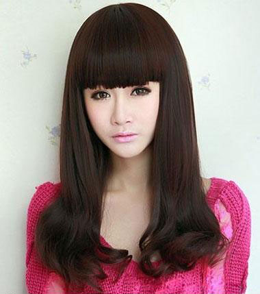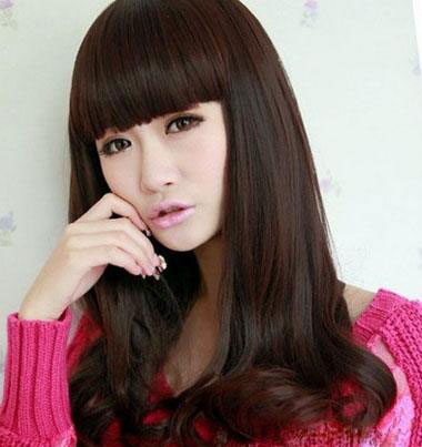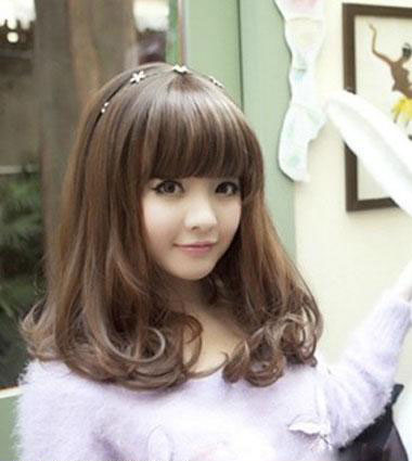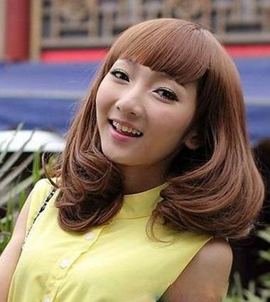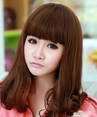 深栗色的发梢,与自然乌黑的发色相接近,很清新自然哦!带着的小参差的齐刘海,柔顺的发丝,卷曲的发尾,这样的一款中长梨花头发型,给人一种浪漫梦幻般的气息哦!