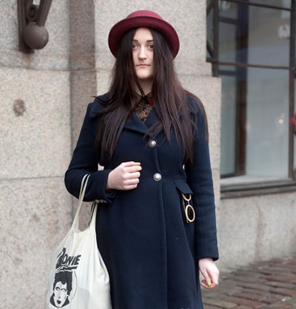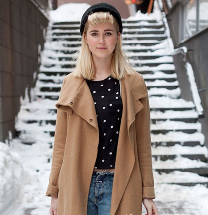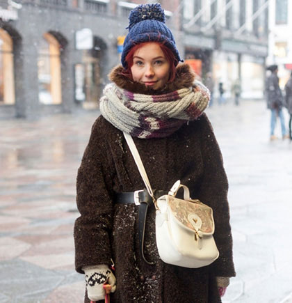 米白色的绒毛帽子看起来非常温暖,能一下子增加不少亲和力,配搭同样米白色的中长发,绝对是寒冷天气下一抹动人的风景!
