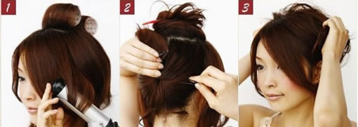 Step2:把头顶处头发暂时固定以下,然后把剩下的头发向内卷用卡子固定。