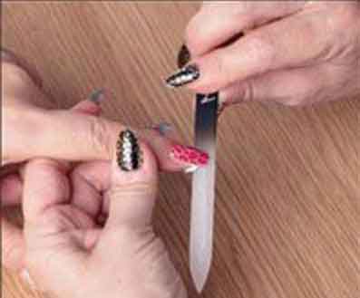 第七步:处理细节,讲指甲贴磨平服,让指甲贴更加自然逼真和你的指甲融为一体。