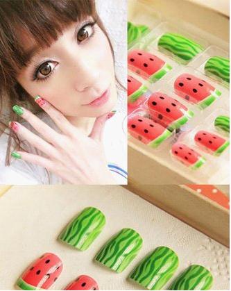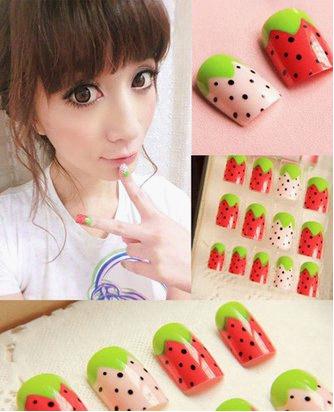 水果是每个美眉们生活中缺一不可的美食,它不但可以美容健康,还可以妆扮。呵呵,当然并非指用真正的水果画指甲,我们可以用美味可口的水果美甲图案来做模版,让你的指尖更美丽哦。今天上海美甲学校为大家精心挑选了一系列水果美甲图案,希望你会喜欢。现在就让我们尽情地享用这份美味的水果妆盛宴吧。