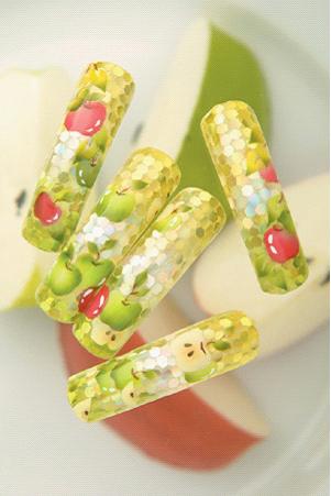美丽的妆容可不能忘了指尖更需要美丽,2013年春季流行什么样的美甲呢?新东坊上海美甲学校为您推荐的今年春季流行水果美甲,让你做甜美可爱小公主!  1、苹果篇 以苹果为主题,用绿色突出表现清凉透明感。用全息图作为背景,是这部作品的最大看点。 可爱苹果指甲步骤详解 1、涂抹顶油,粘贴全息图。 2、用洁净粉仔细涂抹全息图。 3、背景的上、下面歌咏黄色和淡绿色来做Air Brush。 4、用Stencil(一种美甲工具)做白色的苹果图案。 5、用淡绿色和红色做出色差,并做苹果形状的Air Brush。 6、描画苹果核、苹果把儿等几个重点部位,然后涂抹顶油。  2、草莓篇 用手工喷漆法描画鲜嫩可口的草莓。用各种颜色描画草莓和草莓梗,突出表现了立体感。 可爱草莓指甲步骤详解 1、用白色做基础。 2、用民间艺术用刷蘸取橄榄绿和绿色做出叶子状,然后用零号刷描画轮廓。 3、用黄色做草莓的背景。 4、用红、紫色给草莓作出色差及明暗效果。 5、用暗褐色画核,用绿色再次进行喷漆。 6、用绿、橄榄绿色给草莓把儿做出明暗效果,并描画出草莓梗几近枯竭的状态。最后,涂抹顶油。