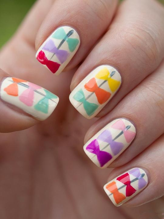 夏日太炎热了,MM们打扮十指时,不妨选择清凉糖果色美甲哦,可以让你的十指充满了清凉甜美气息,就像喝一杯冰冻糖水,既漂亮又祛暑哦,心情瞬间大好! 冰凉剔透的糖果色,很多MM的最爱,很适合夏日。 青春糖果蝴蝶结,很甜心的一款美甲图片呢! 粉紫玫红搭配在一起,这样活力的美甲,给你带来无限遐想.