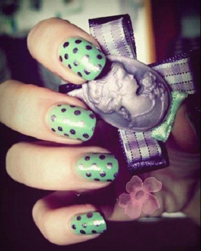 除了自制波点美甲,还有一种更简单的方法:利用美甲胶纸制作波点美甲: