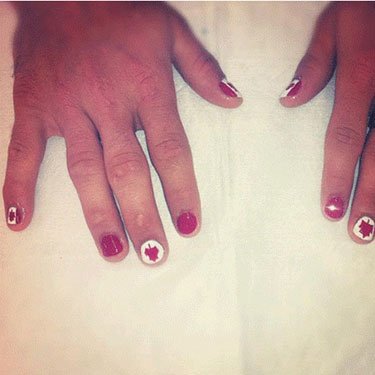谁说只有女孩能做美甲?这位加拿大男运动员给选择用指甲表达自己的爱国之情,指甲上标志性的枫叶图案十分可爱。