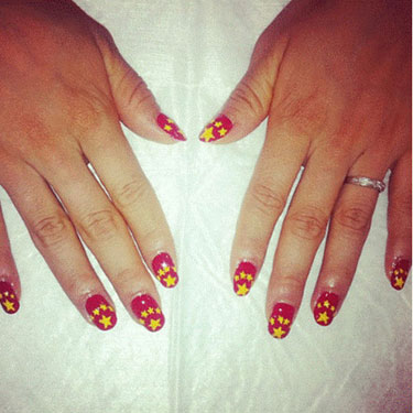 伦敦著名美甲师 Sophy Robson设计的五星红旗美甲,很适合中国运动员哦!