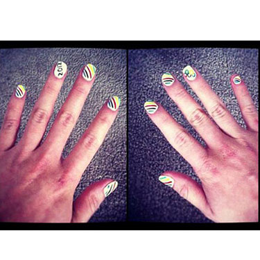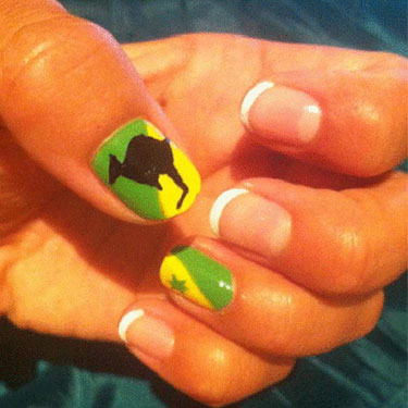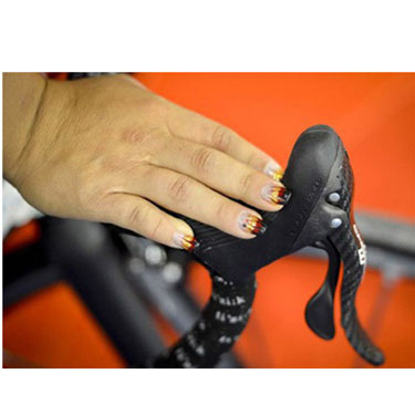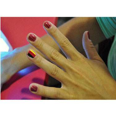 德国自行车运动员Kristina Vogel的美甲,将德国国旗元素以简便的形式描绘到指甲上,又加入了艺术线条装饰,更加时尚。