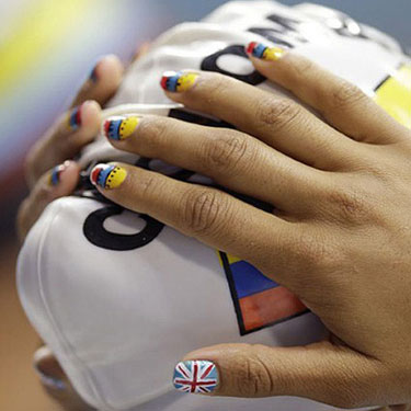 意大利游泳运动员Stefania Pirozzi用泳衣向2012奥运会的主办国英国致敬,但是仍然在指甲上保留了意大利国旗的条纹图案。