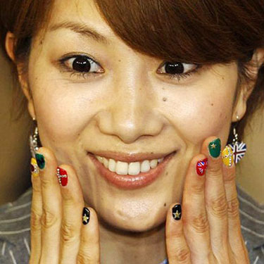 Riko Shiote 是日本的羽毛球运动员,她在指甲上运用了小钻石和金色五角星装饰。