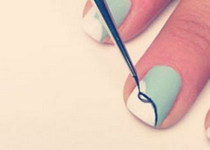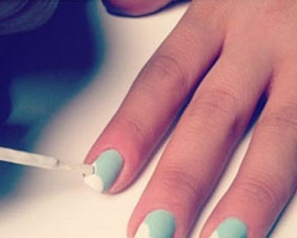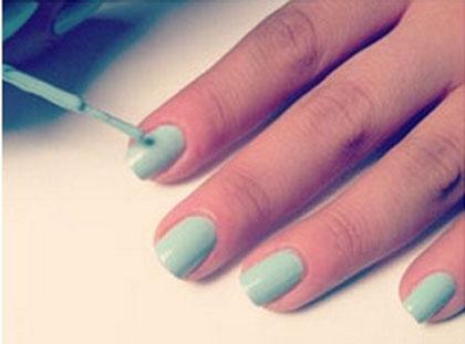 所需物品:薄荷色或蓝绿色甲油、色甲油、黑色甲油、极细刷、亮甲油。