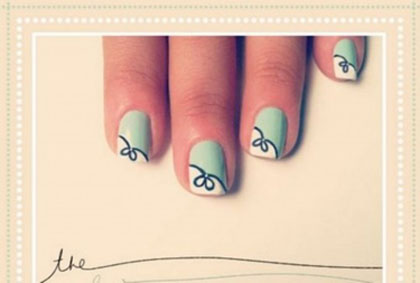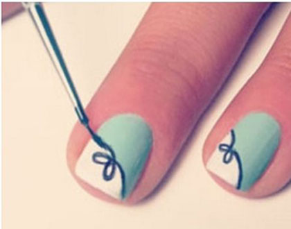 蝴蝶结与法式美甲,这两个经典的流行元素的结合是不是让人特别期待呢?蓝绿色的主色调非常清新可人,歪歪的蝴蝶结又显调皮可爱,这周末就DIY这款美甲吧!...