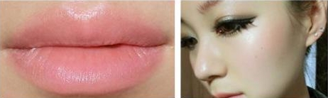 Step2:最后涂抹上橘粉色的唇膏和腮红就完成啦,超简单的一款妆容哦。