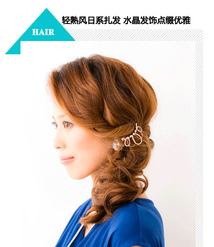 30+的轻熟女气质优雅出众,如何扎发能够更加凸显自己的熟女魅力呢?爱美发型小编为大家推荐一款轻熟风的日系扎发教程,采用华丽惹眼的水晶发饰点缀,让你秋日优雅绽放。