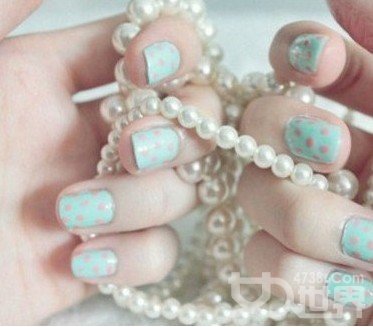 波点之吻 绿色打底,上面点缀着粉色的波点,看起来美极了,这样的指甲造型很适合与毛衣搭配,虽然简单但是却有着不寻常的魔力。 花朵与蓝天的邂逅 在指尖上涂抹一层淡淡的蓝色,在与蓝色相见的地方,画一朵花,再点缀一些叶子,这样看起来更加的栩栩如生,并不一定全部要盛开的花朵,偶尔有几朵含苞待放的花也不错。