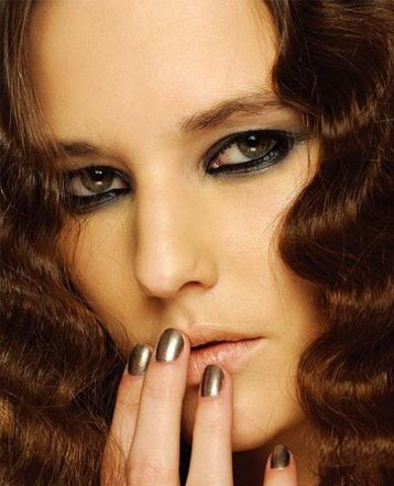 金属色在秋冬同样火红。除了传统的铜金色,不妨试试如铁片的金属银、有幻彩效果的金属墨绿和金属蓝,同时在本季纽约时装周,模特都以短甲配以简单的甲色,如金属色配上今季流行的短甲,会有超乎想像的效果。