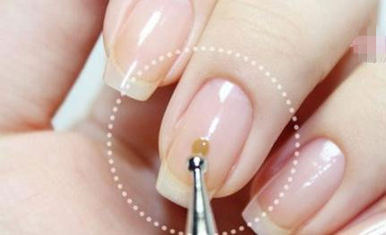 自己做美甲第二步:点出一圈圆点,注意要带有一定弧度。
