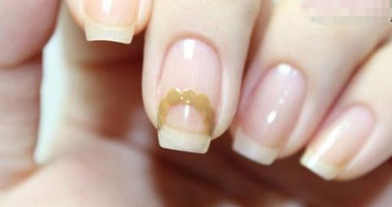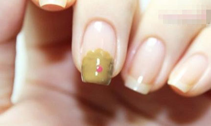 自己做美甲第三步:涂满浅棕色指甲油,小曲奇的雏形就初步完成了。