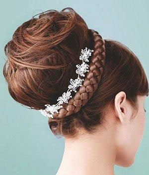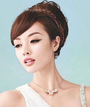 简单的盘发当然不能满足既清爽还要很性感的需求。梳一个高高的发髻,将水晶发饰缠绕住发包,露出纤细的脖颈就是让整个发型线条明显略带性感的小心机。