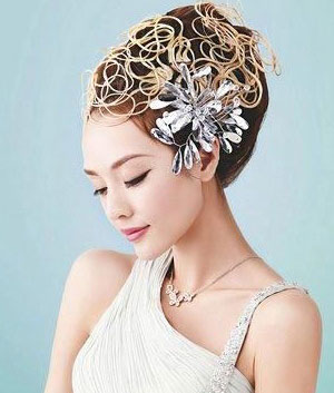 增加梦幻的海底精灵气息。选择造型奢华的发饰,能与同样闪亮的服装完美 呼应。用发片在额头上缠绕固定住,最后使用定型产品固定,这样哪怕是海风再大等情况,都不会尴尬。
