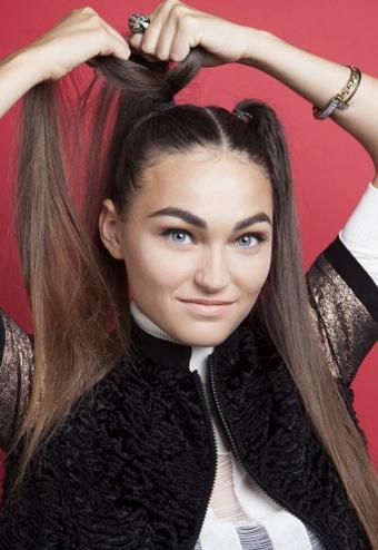 把头发中分,分别梳两个高马尾,注意要绑的紧一些。
