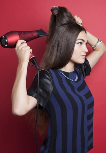 首先,把头顶上方的头发吹蓬一些,撩起上半部的头发,用吹风机对着发尾吹一下,使头发看起来比较蓬松,如果不想用吹风机的话,可以用梳子把头发从底部梳的较为蓬松一点。