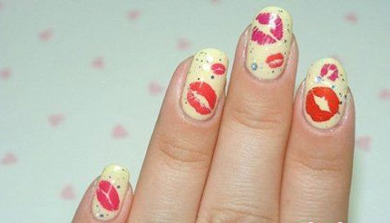 红唇美甲看似很难,实则暗藏玄机,这一个个娇艳的红唇并非是自己画上去的,而是指甲贴纸的效果哦,这大大地为我们的操作降低了难度,是款简单又精致的美甲呢。