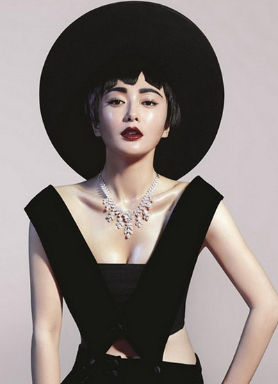 魅惑长卷发+风情礼帽+鲜艳红唇,将上海丽人的感觉演绎得非常完美。