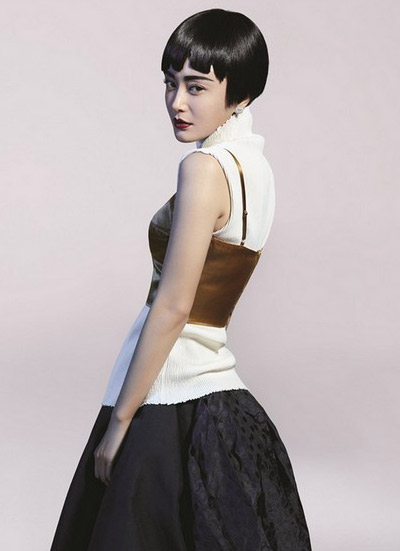 波波头短发刘海剪裁成参差不齐的形状,紧贴脑门,一抹血色红唇艳丽芳泽。