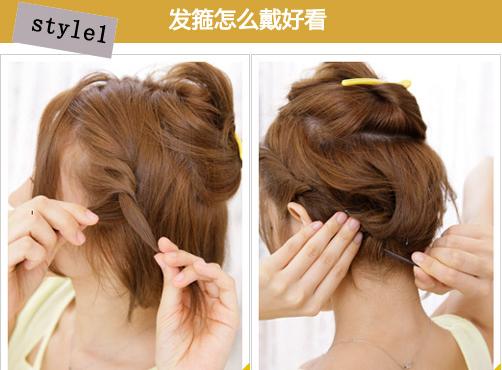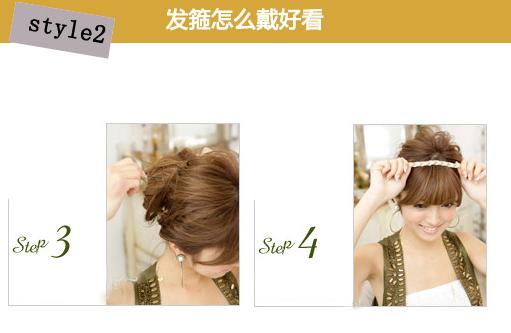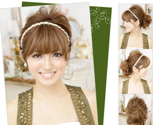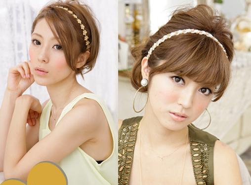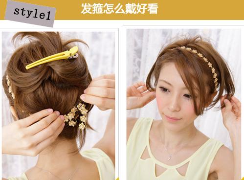 第一款:这款发型更适合短发的MM,花朵发箍搭配柔美的栗色斜刘海,柔软气质立刻提升,盘发稍显凌乱,诱人显气质。