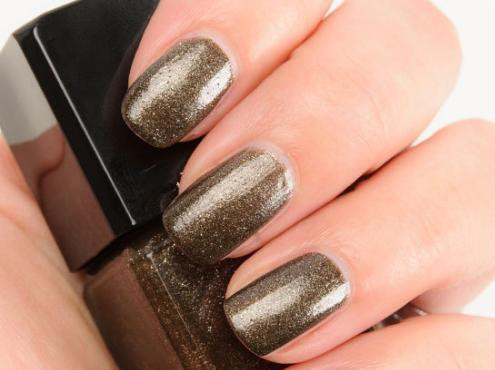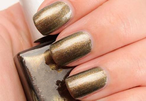 这款以金色为主打色的指甲油,除了会闪耀的金色之外,里面还包含了少量的蓝色和绿色,在不同的角度会闪现出不同的色调,就好像是一些甲虫的外壳一样,充满了斑斓的变换色,在阳光下非常漂亮。