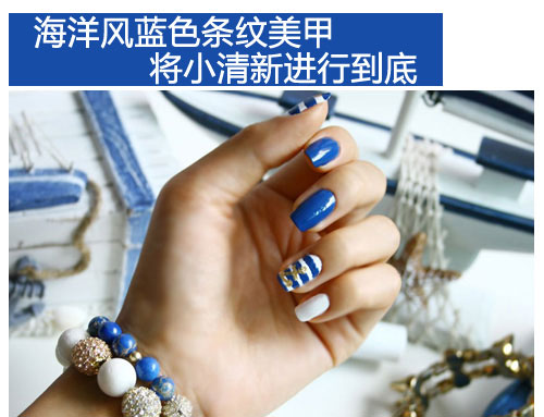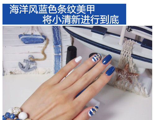 这样一款海洋风蓝色条纹美甲彩绘教程就完成了哦,一起将小清新进行到底吧!