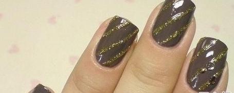 今天新东坊美甲学校小编分享的是一篇简单的墨绿色背景军装风美甲教程图解,军装也来大玩个性潮流,斜条纹以及镶钻设计,酷酷又不显沉闷呆板。 1.保护指甲的步骤一步都不能少,打磨完指甲后上底油先。 2.深绿色甲油均匀上色。 3.用金色带珠光甲油以斜条纹形式绘画。 4.最后点上闪钻即可,很容易的吧!