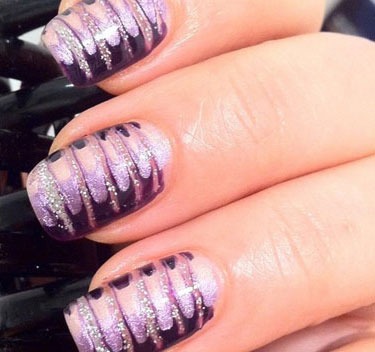 ★ STYLE 1 浓情紫色美甲,但不仅限于单一颜色,条纹状的花纹,感觉很自然,不像普通条纹那么突兀,在照明灯光下,显得很有光泽。
