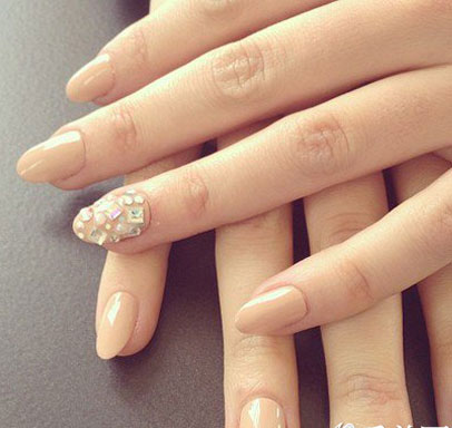 ★ STYLE 4 高贵典雅的一款美甲,裸色底色衬出白皮肤,无名指用水钻点缀满,既不会感觉单调又有点睛之笔,颇有名媛气质。