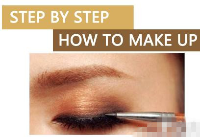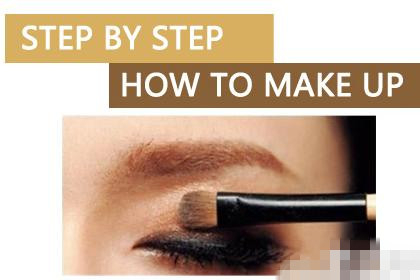 用中号眼影刷蘸取深棕色眼影均匀地轻扫眼窝,而双眼皮处皱褶以下可以多扫几次,产生渐变感,令双眼更立体。