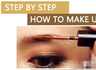 选择与眼影同色系的眉胶,自然涂抹双眉,突出眼部的立体感。沿眉毛长度涂抹,从眉梢向眉头反方向涂抹,从根部开始着色,然后从眉头到眉梢梳理。