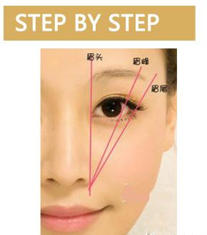 现在比较流行把眉毛画的较长,总结现在流行的眉,三个重点位置大概是: