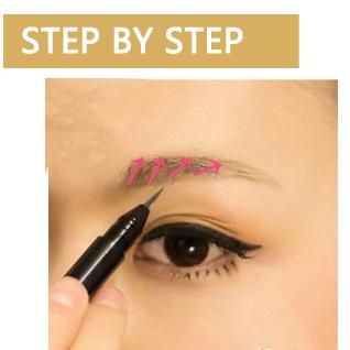大概轮廓确定后,就用水眉笔在这个范围内对眉毛进行填色,填色方式是顺着眉毛生长的方向一笔笔描画,这样出来的眉毛才自然。