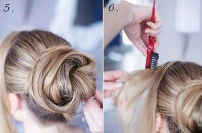 Step5:最后一撮头发主要固定在发苞头的外围就好。 Step6:然后用梳子打理下刘海,梳理整齐后再稍加固定。