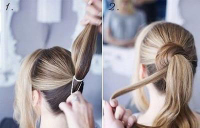 Step1:首先在自己想要的位置扎个马尾,将刘海部分的头发预留出来,这个肯定大家都会。 Step2:然后取马尾中的一小搓头发环绕头发根部,因为是第一束头发所以紧点能方便后面头发的缠绕。