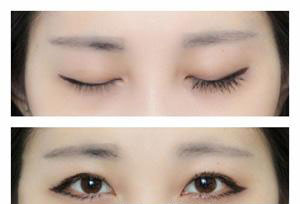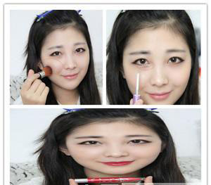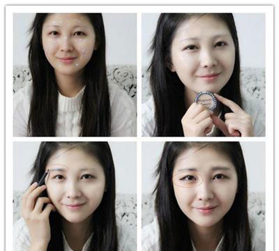 3、用眉笔沿着眉毛的形状勾画。 4、接着用眼线笔沿着睫毛根部勾画上下眼线。 5、用睫毛膏涂画上下睫毛。