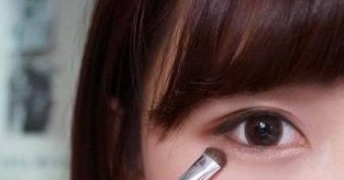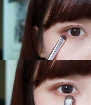 第三步:选择红棕色的眼影涂在双眼皮的褶皱处,下眼尾也晕染开来。