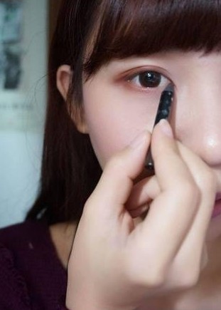 第四步:画上一条细细的眼线,眼尾微微下垂。