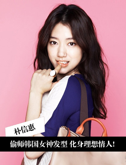发型点评:《继承者们》让朴信惠人气飙升,无论是在剧中还是在现实生活中,朴信惠都喜欢清纯中带点小性感的微卷发,棕红色染发更是让朴信惠看起来女人味十足。