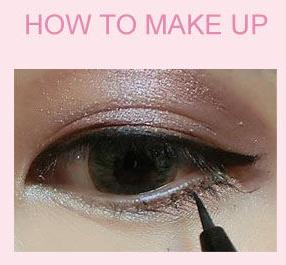 步骤四:选择黑色眼线液画出眼线,一般从中间往后画,然后再画眼头,切记不要留白,把睫毛根部都填充好。