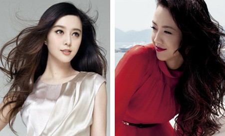 成熟知性的低扎马尾衬得女神更加优雅美丽,黑色的卷发更显范冰冰的端庄而汤唯的栗色长发则优雅却不失活泼。
