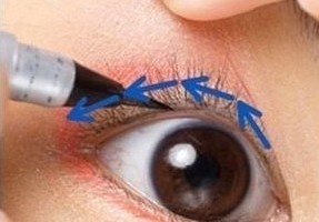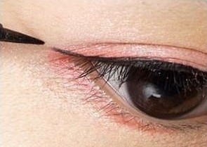 紧贴睫毛的根部,在眼中到眼尾,眼头到眼中画出大约1mm的细长眼线。